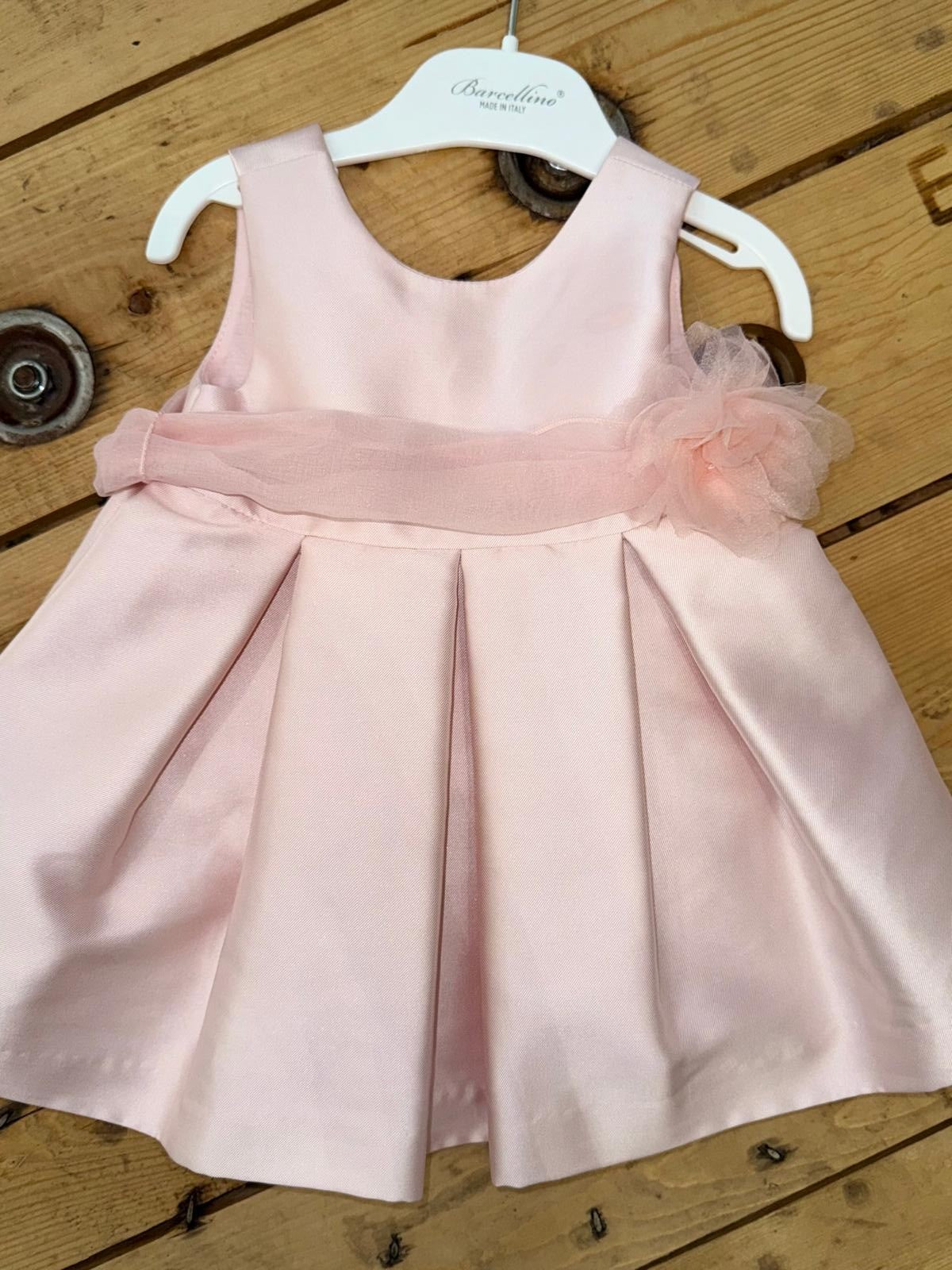 Delicato abito in raso rosa firmato ABel & Lula, impreziosito da cintura in vita in organza.