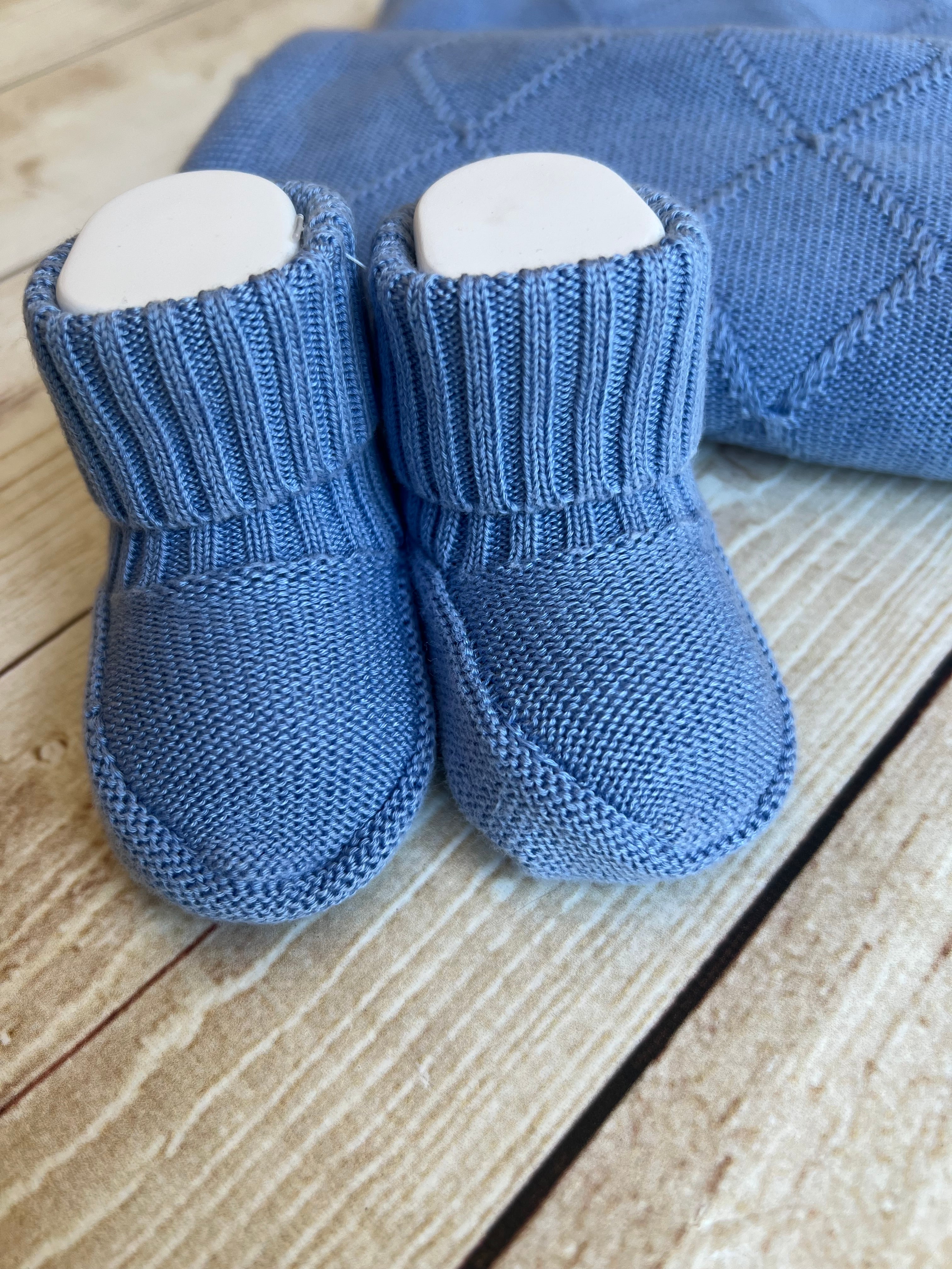 Morbide e confortevoli, queste babbucce firmate Maglificio di Verona cod 045379 sono realizzate in 100% filo di eucalipto, una fibra naturale e traspirante ideale per la pelle delicata del neonato. Perfette fin dai primi giorni di vita, nella dolce tonalità avio.